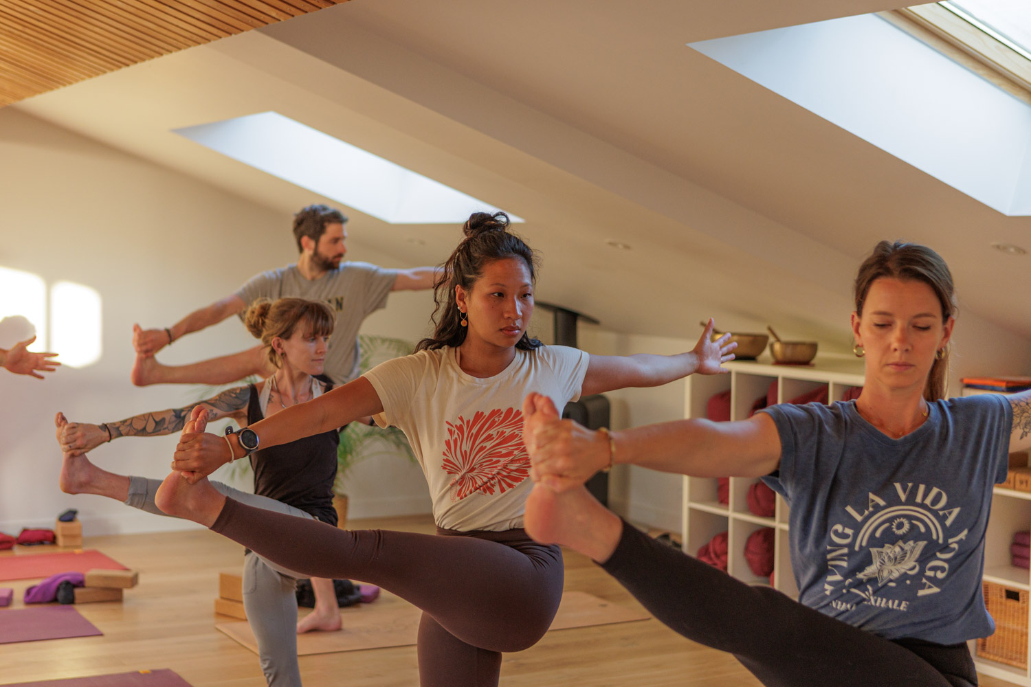 Le Vinyasa Flow propose une série de posture fluide et dynamique, axant le travail sur le renforcement musculaire, la souplesse et la concentration, plutôt dans l’énergie yang (solaire).
