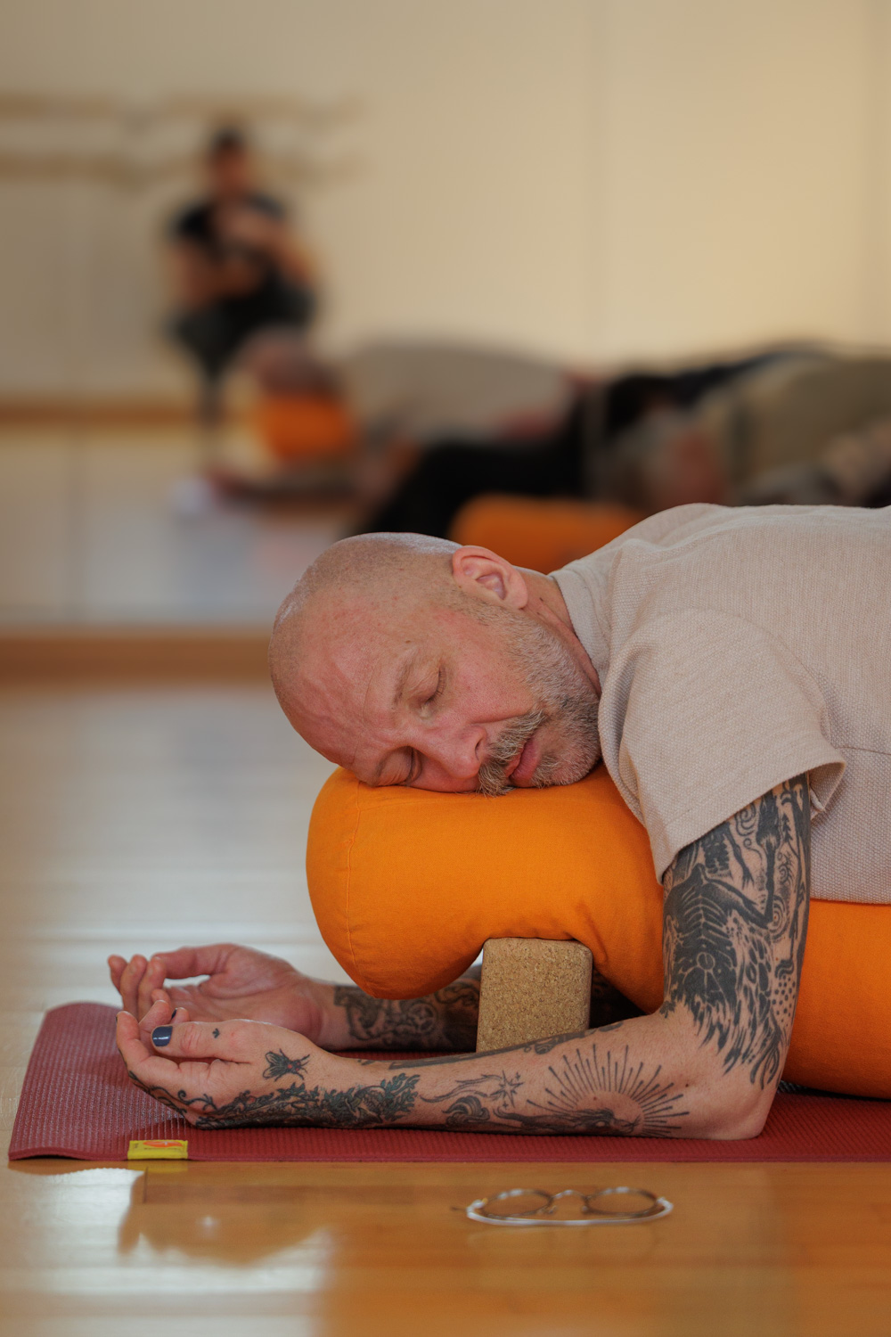 Durant une séance vous vous installerez dans seulement 3 à 5 postures, mais elles seront tenues chacune entre 10 à 20 minutes, pour permettre au corps de réellement se relâcher. A la fin de chaque posture, en temps est pris pour en sortir doucement, et en ressentir les bienfaits, en assise, allongé, ou en contre-posture, vous serez à nouveau guidé par la voix de l’enseignant pour explorer vos sensations, votre respiration, observer vos pensées, et vous réjouir de ce sentiment de bien-être.