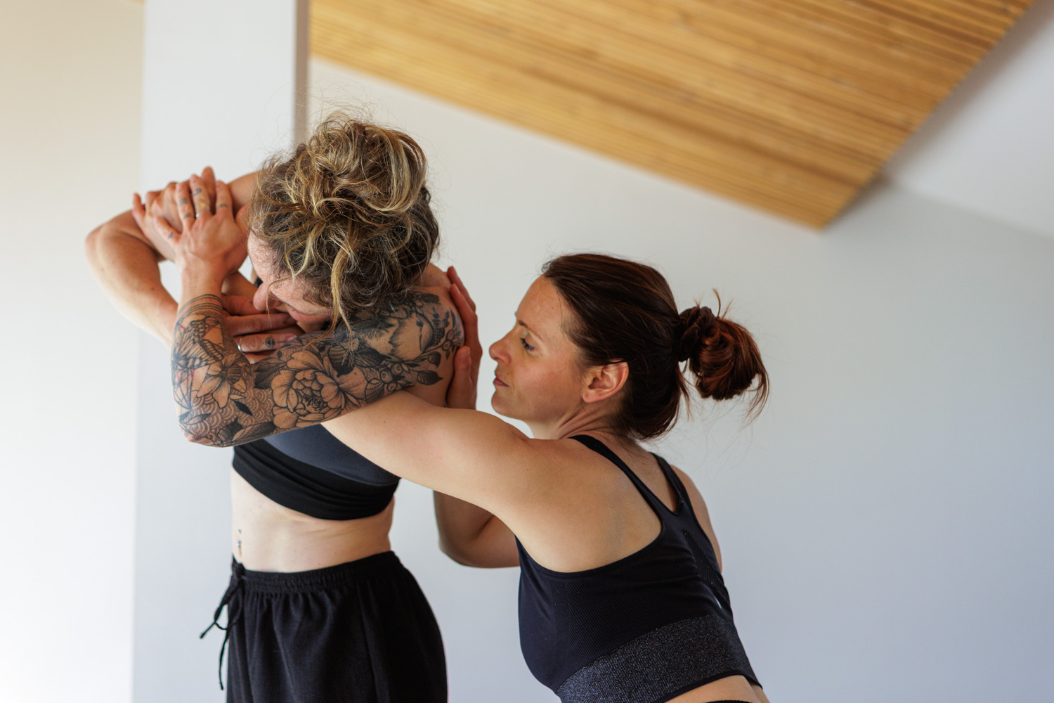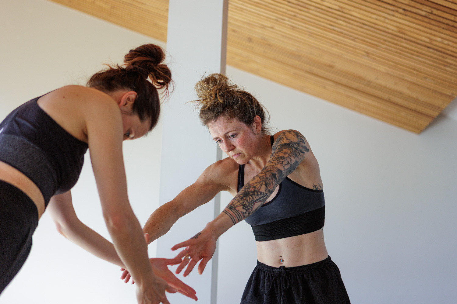 En plus des cours de yoga classique, Meryl et Charlotte pratiquent et enseignent ensemble depuis 4 ans l’acro yoga et le partner yoga, des techniques d’exploration des postures de yoga, plus ludiques, créatives, en binôme ou en groupe. A travers leurs entraînements réguliers, en partner yoga notamment, mais aussi à travers leur passion pour le yoga et la danse en général, elles éprouvent le besoin naturellement, de créer des flows plus personnels, expérimentaux, avec une sensibilité commune.